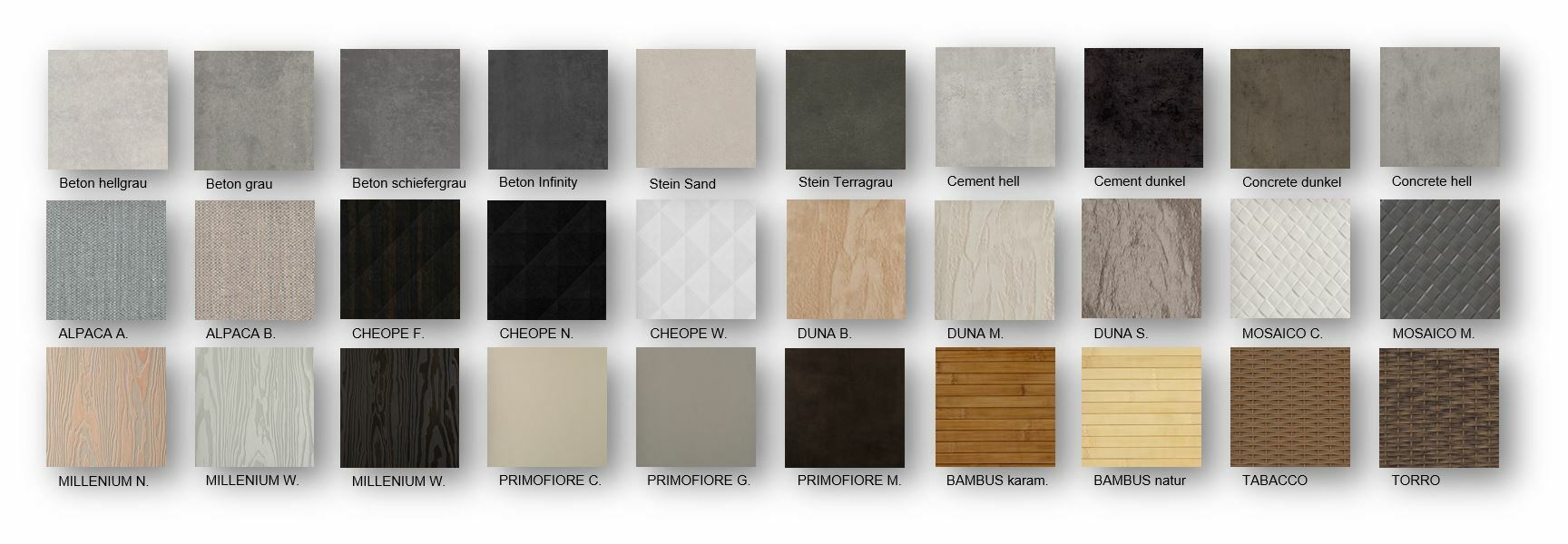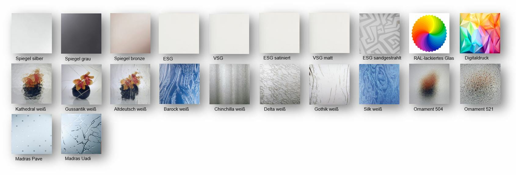 Ob Glas, Spiegel, Holz, oder Unifarben – alles ist möglich. Durch füllungsteilenden Sprossen waagerecht oder senkrecht können unterschiedliche Farben auch miteinander kombiniert werden.